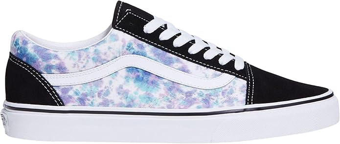 The Tie Dye Old Skool the Vans classic skate shoe and first to bare the iconic sidestripe is a low top lace-up featuring tie-dye printed canvas and suede uppers re-enforced toecaps to withstand repeated wear padded collars for support and flexibility and signature rubber waffle outsoles.